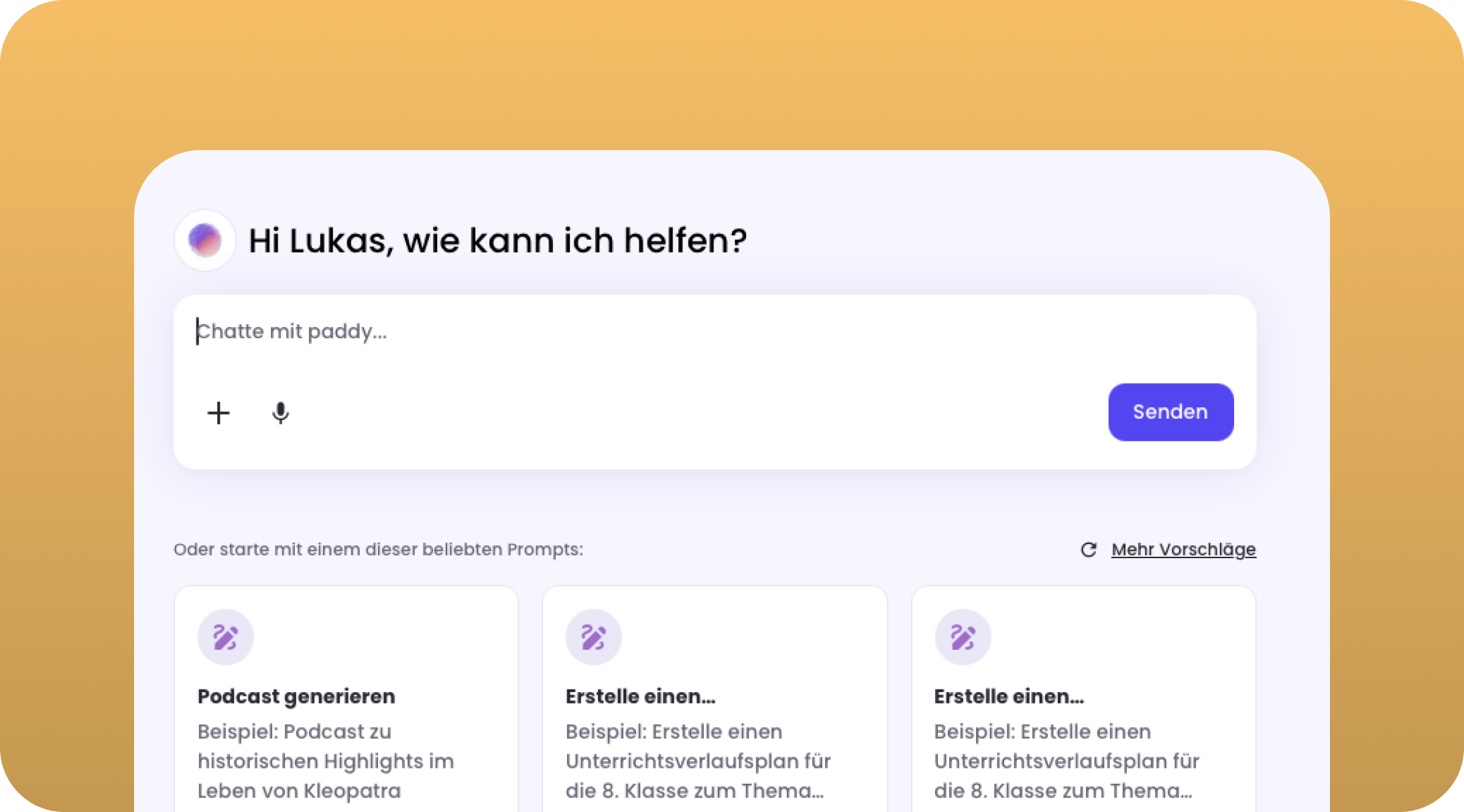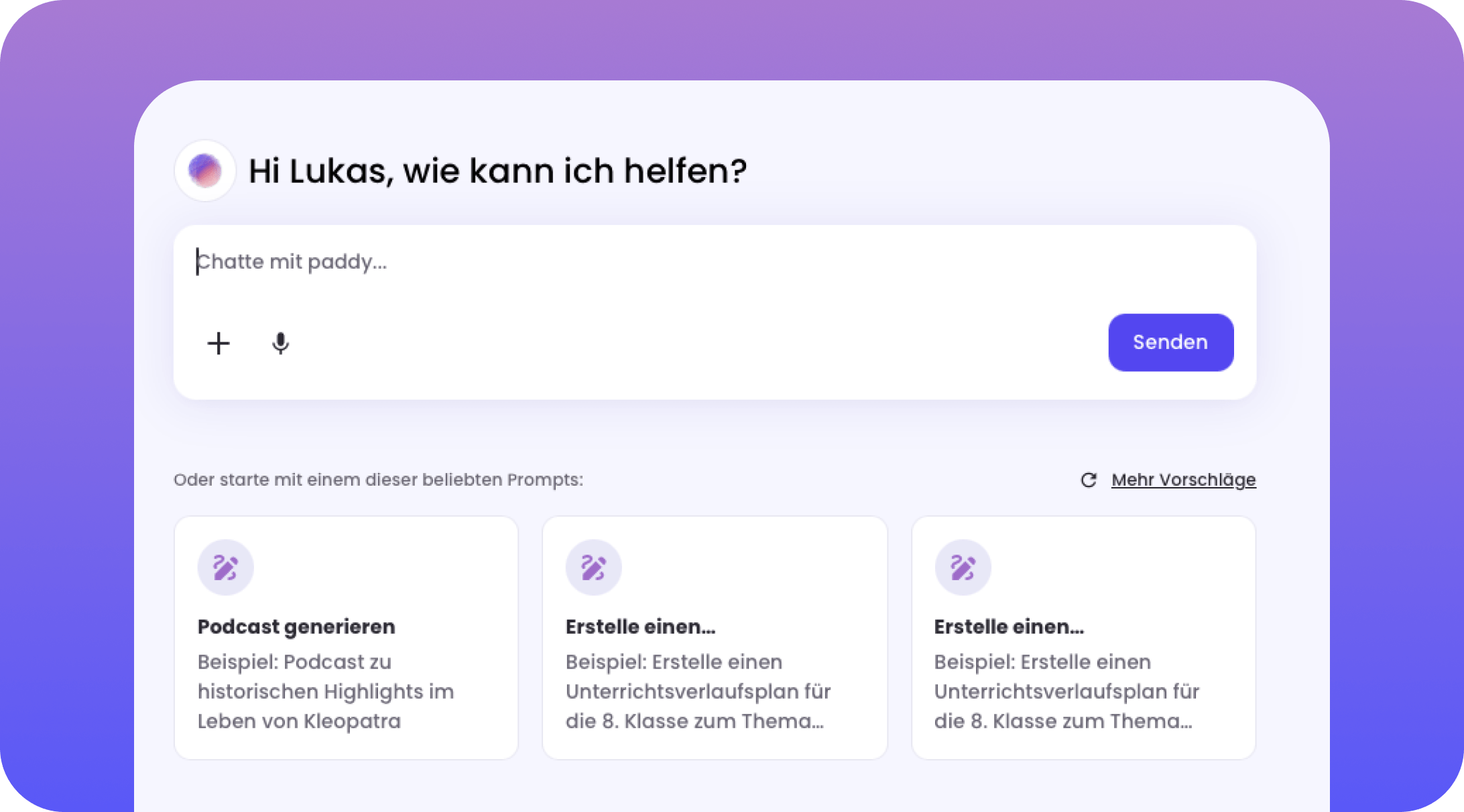 Stell dir vor, du hast einen magischen Chat an deiner Seite, der dich in jeder Phase des Schulalltags unterstützt. Starte jetzt mit paddy und erlebe, wie sich KI plötzlich nach echter Entlastung anfühlt.