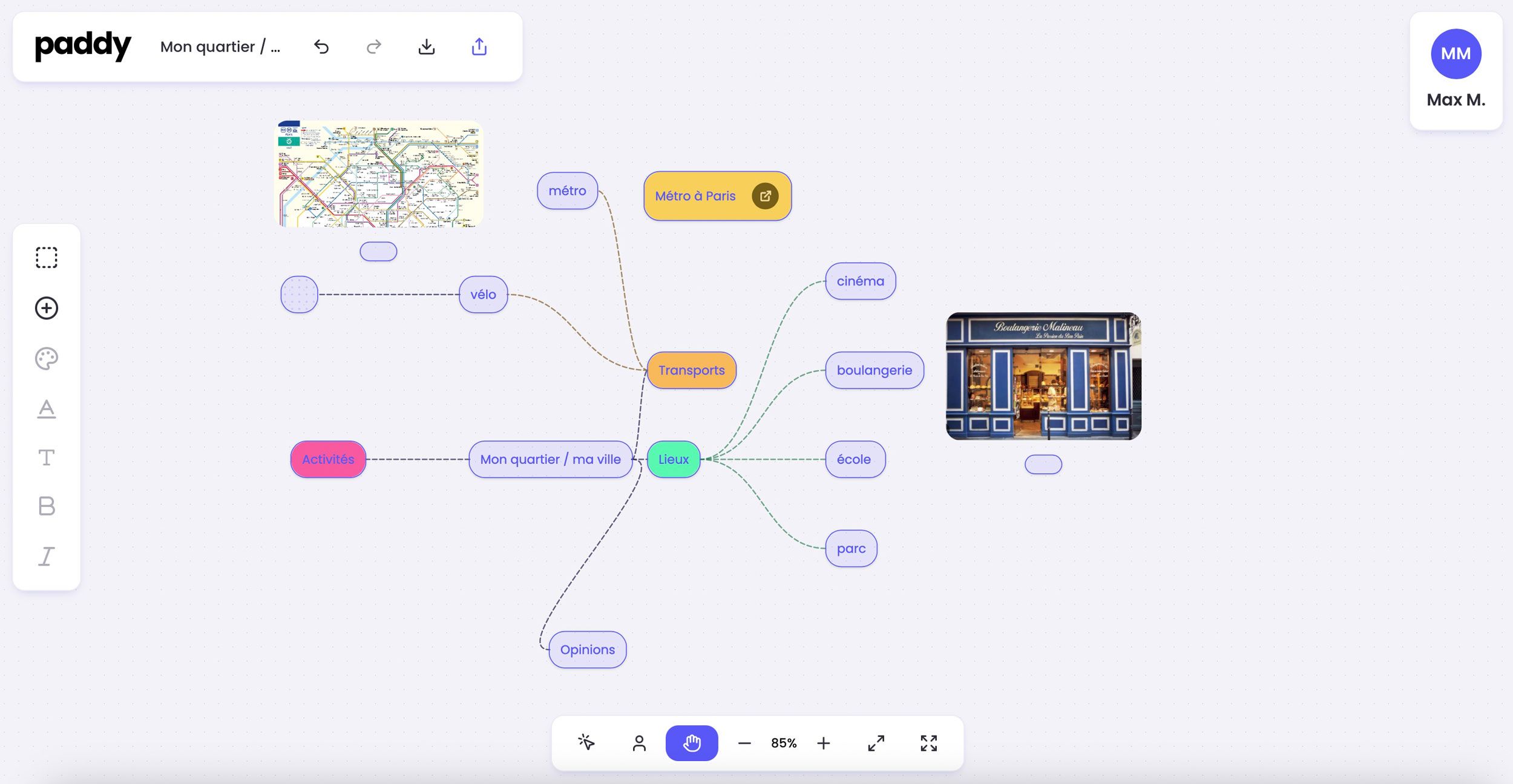 stärkere SuS erweitern die Mindmap mit eigenen Kategorien (z. B. „problèmes“ oder „plaisirs“).