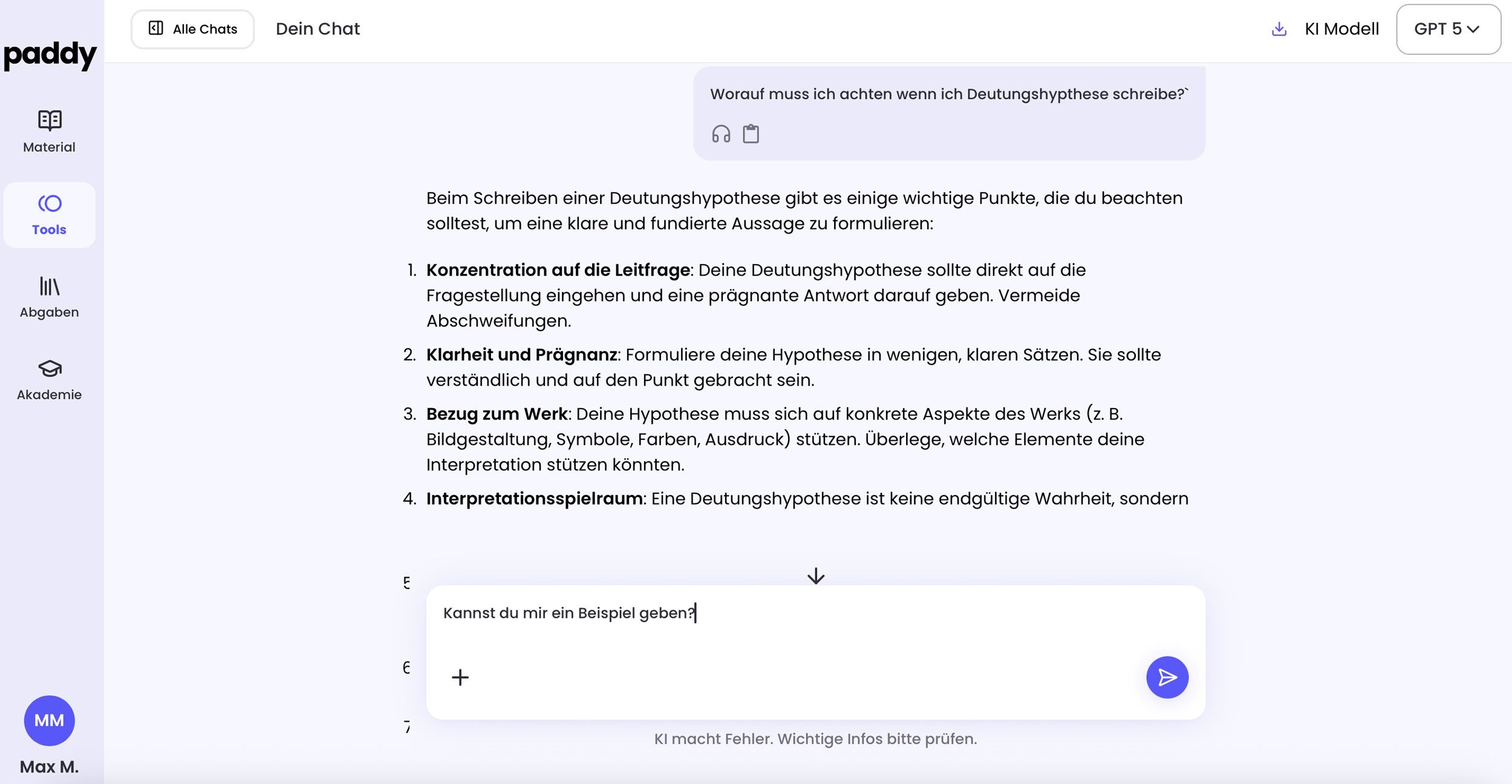 Der KI-Assistent hilft beim Formulieren einer Deutungshypothese: